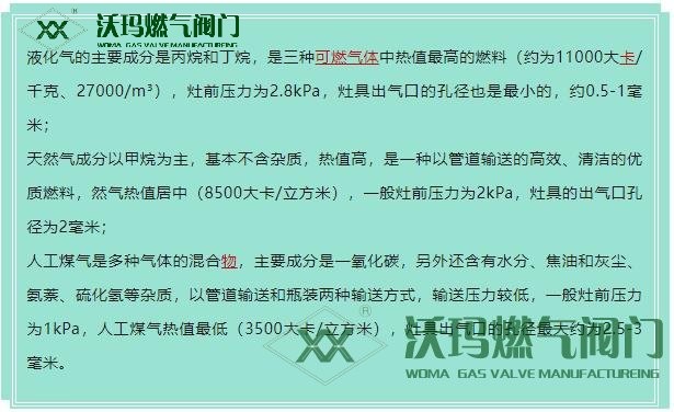 總結:再次強調:液化氣灶、天然氣灶與煤氣灶是不能通用的。以上就是玉環沃瑪小編整理的有關《液化氣灶、天然氣灶、煤氣灶通用嗎?有什么區別?》的大致內容,如有錯漏之處強朋友們及時指出小編會在第一時間改。想要了解更多燃氣灶相關信息,請收藏本站及時關注本站更新。玉環沃瑪燃氣閥官方網址:www.dfyfxx.cn
